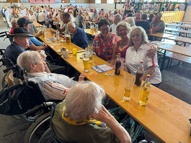 In der Festhalle angekommen, wurden die Bewohner von lebhafter Volksmusik empfangen, die sofort für gute Laune sorgte. Bei Bier und herzhaftem Essen konnten sie sich entspannen und die Gesellschaft ihrer Mitbewohner genießen. Die Klänge der Musik luden viele dazu ein, mitzuwippen und sogar mitzusingen, was die Stimmung noch weiter anhob.